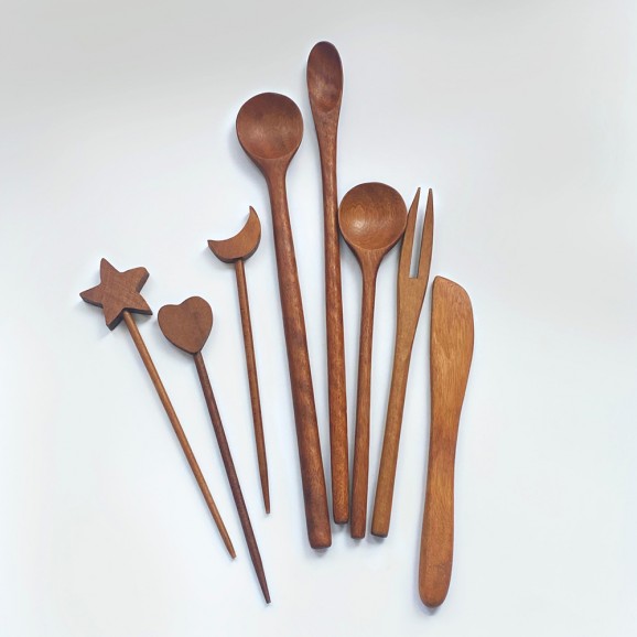 • [우드 옻칠 커트러리] 티스푼, 티포크, 버터나이프, 머들러