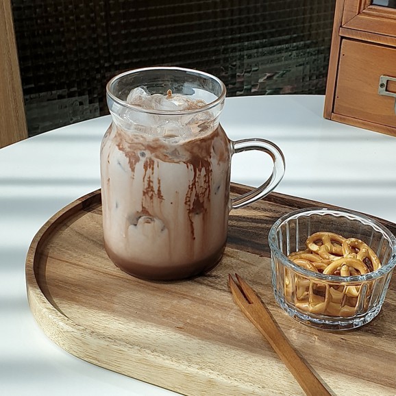 • [내열유리 우유컵] 예쁜 홈카페 홈브런치 유리 머그컵 아메리카노 라떼