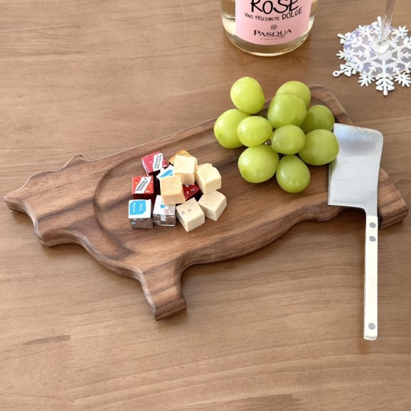 • [카우 우드 트레이] 스테이크 플레이팅 귀여운 소 나무 도마 캠핑